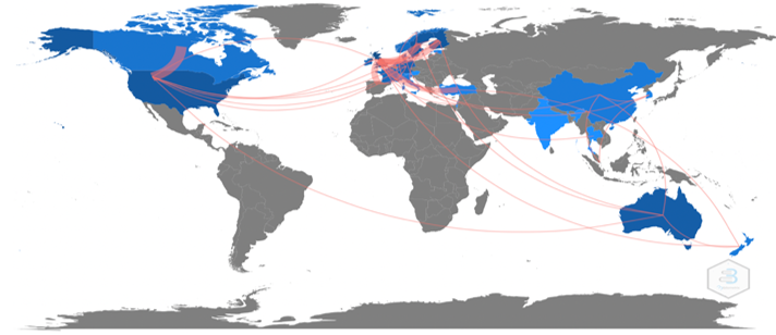 Map of collaboration between countries